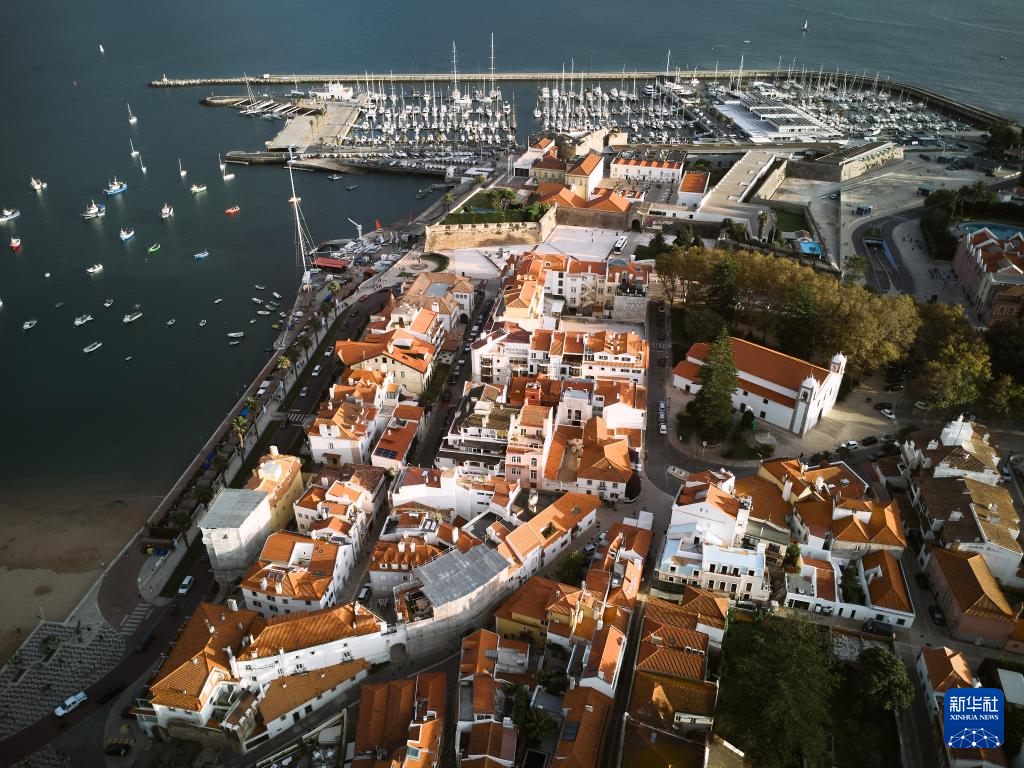 这是10月30日拍摄的葡萄牙卡斯凯什老城区和港口(无人机照片)。