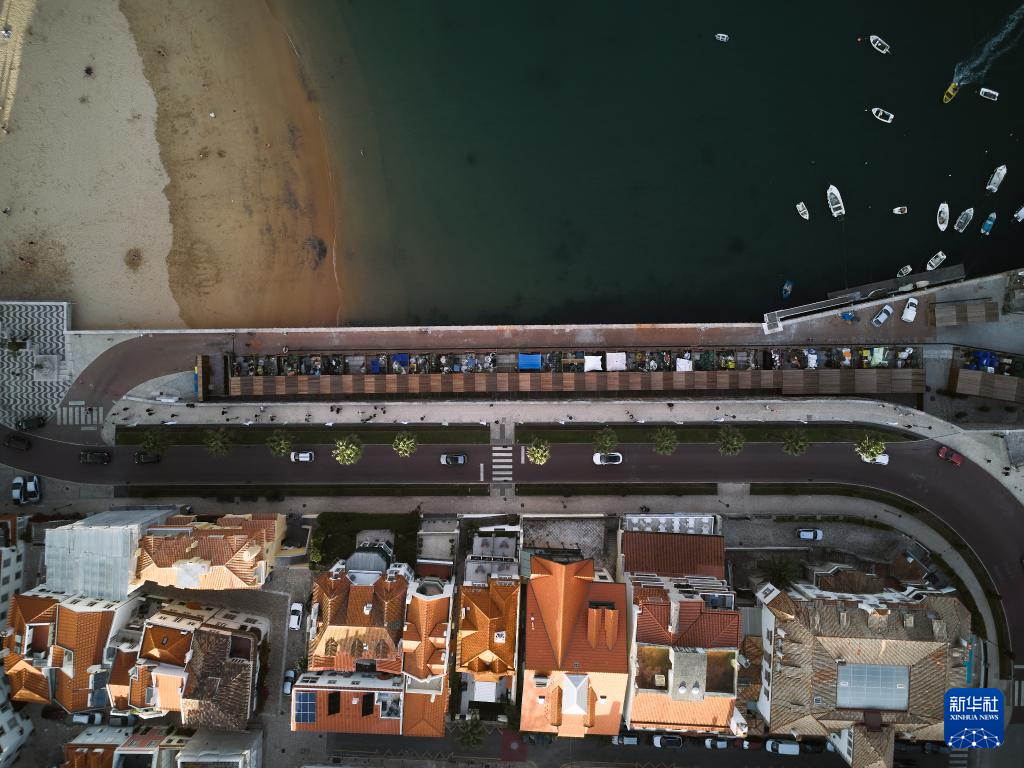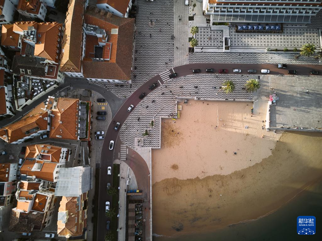 这是10月30日拍摄的葡萄牙卡斯凯什老城区和海滩(无人机照片)。
