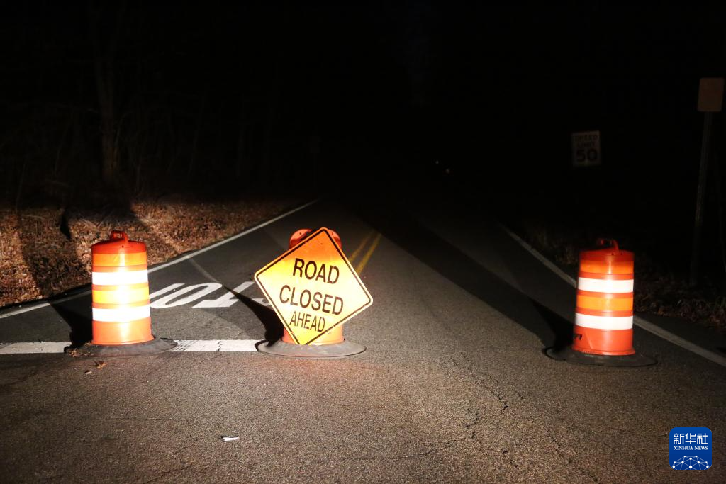 11月9日,交通指示牌显示美国纽约州与新泽西州交界地区的道路关闭。