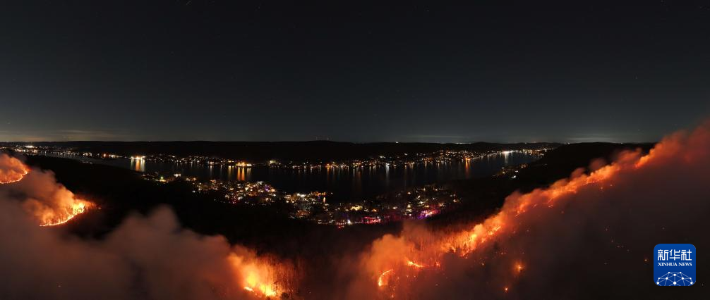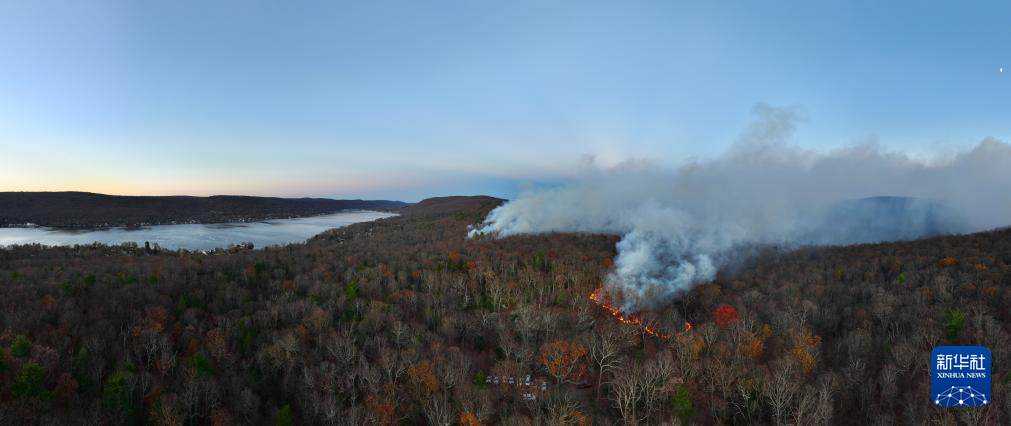 这是11月9日在美国纽约州与新泽西州交界地区拍摄的山火(无人机照片)。