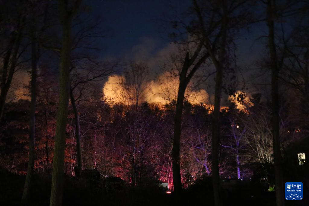 11月9日,美国纽约州与新泽西州交界地区附近山火照亮夜空。