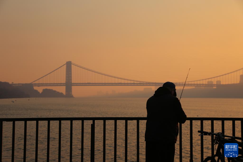 11月9日,横跨美国纽约州与新泽西州的乔治华盛顿大桥被烟尘笼罩。
