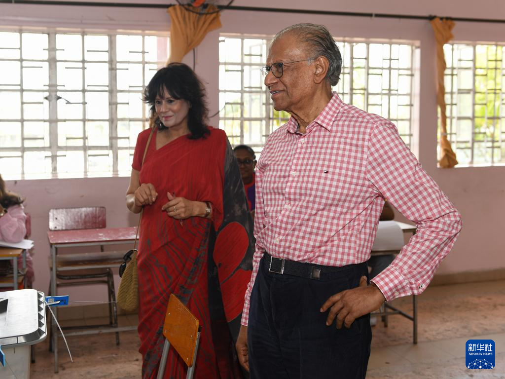 11月10日,前总理纳文钱德拉·拉姆古兰(右)在毛里求斯瓦科阿市的一处投票站参加投票。
