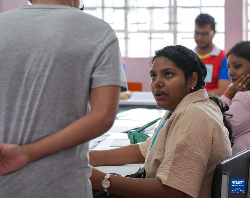 11月10日,工作人员在毛里求斯瓦科阿市的一处投票站为选民解释投票事宜。