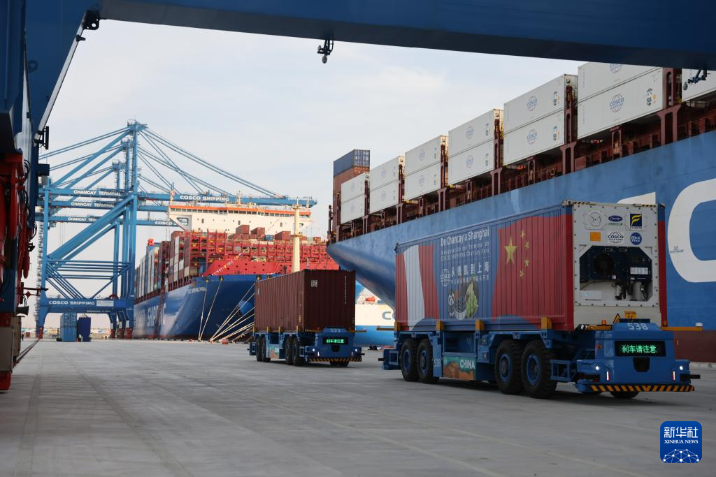 11月14日,在秘鲁首都利马以北的钱凯港,岸边智能化设备吊装集装箱。