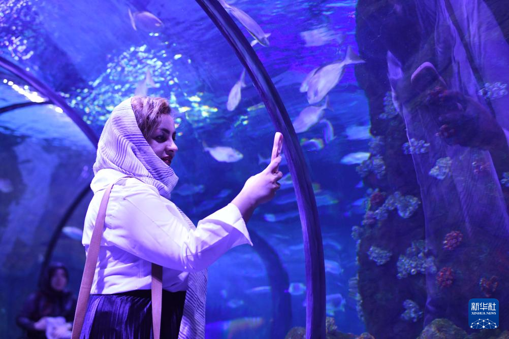 11月18日,游客在伊朗吉兰省恩泽利港的恩泽利水族馆内参观。