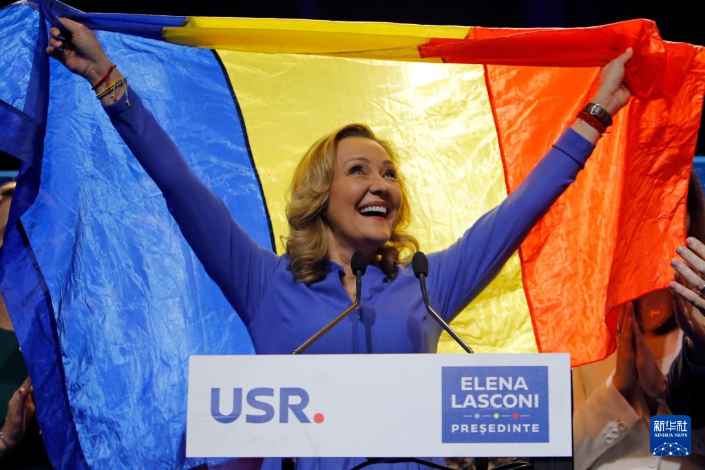 这是11月25日在罗马尼亚首都布加勒斯特拍摄的罗马尼亚总统选举候选人、拯救罗马尼亚联盟党主席埃列娜·拉斯科尼。