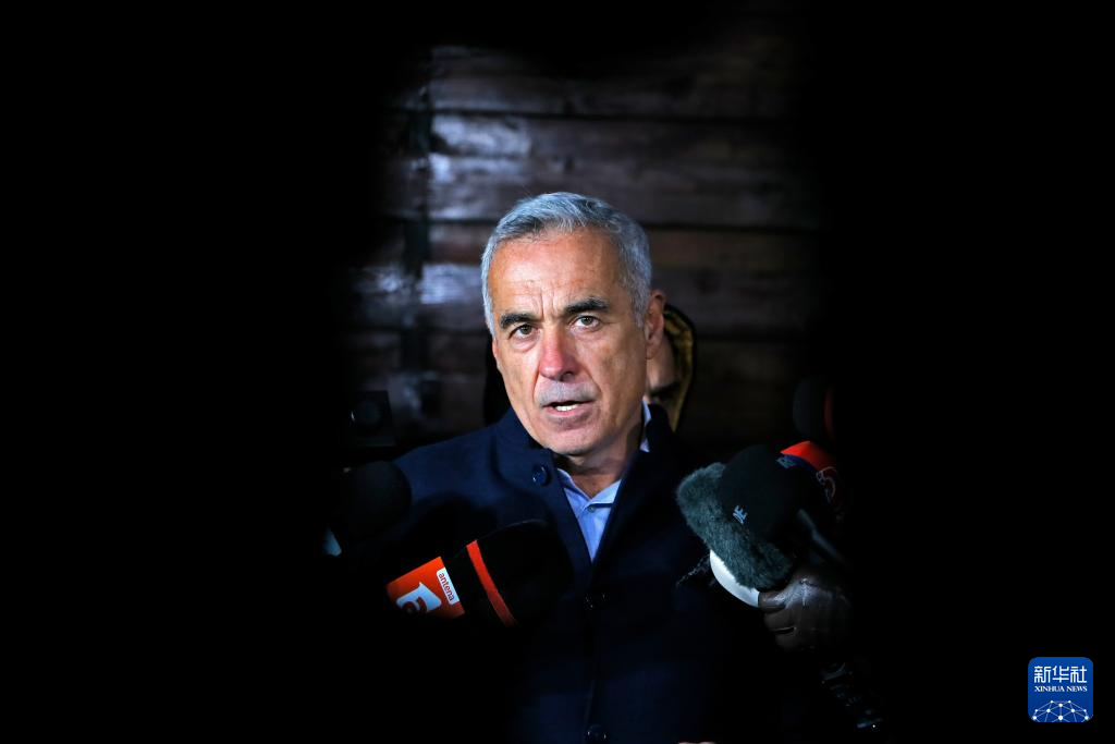 11月26日,在罗马尼亚首都布加勒斯特附近的伊兹沃拉尼村,罗马尼亚总统选举独立候选人克林·杰奥尔杰斯库向媒体发表讲话。