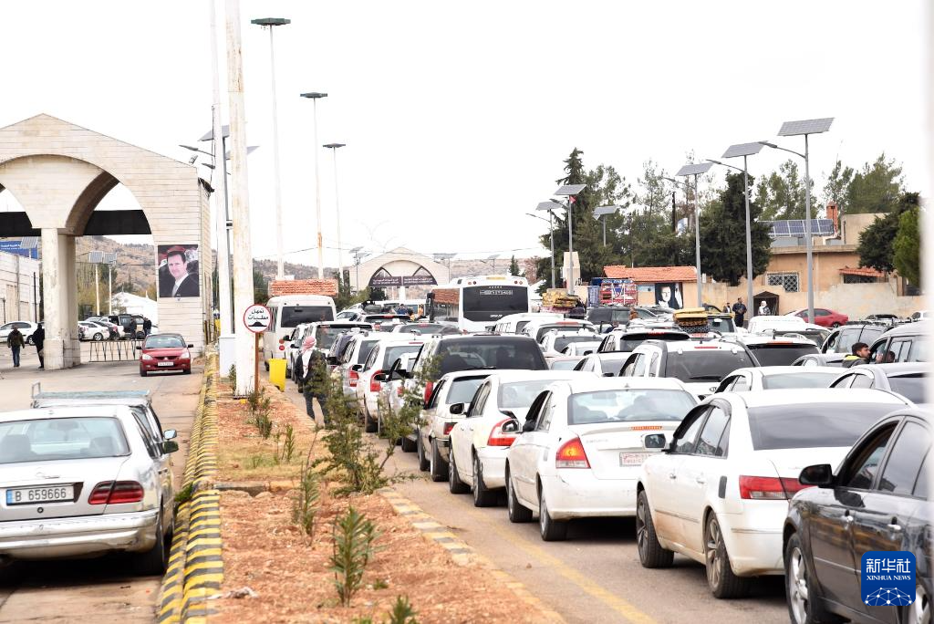 11月28日,在叙利亚中部佳迪达·亚布斯口岸,车辆等待通关。新华社发(蒙塞夫·梅马里摄)