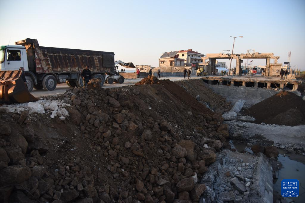 11月30日,机械车辆在黎巴嫩的阿里达口岸附近道路施工作业。