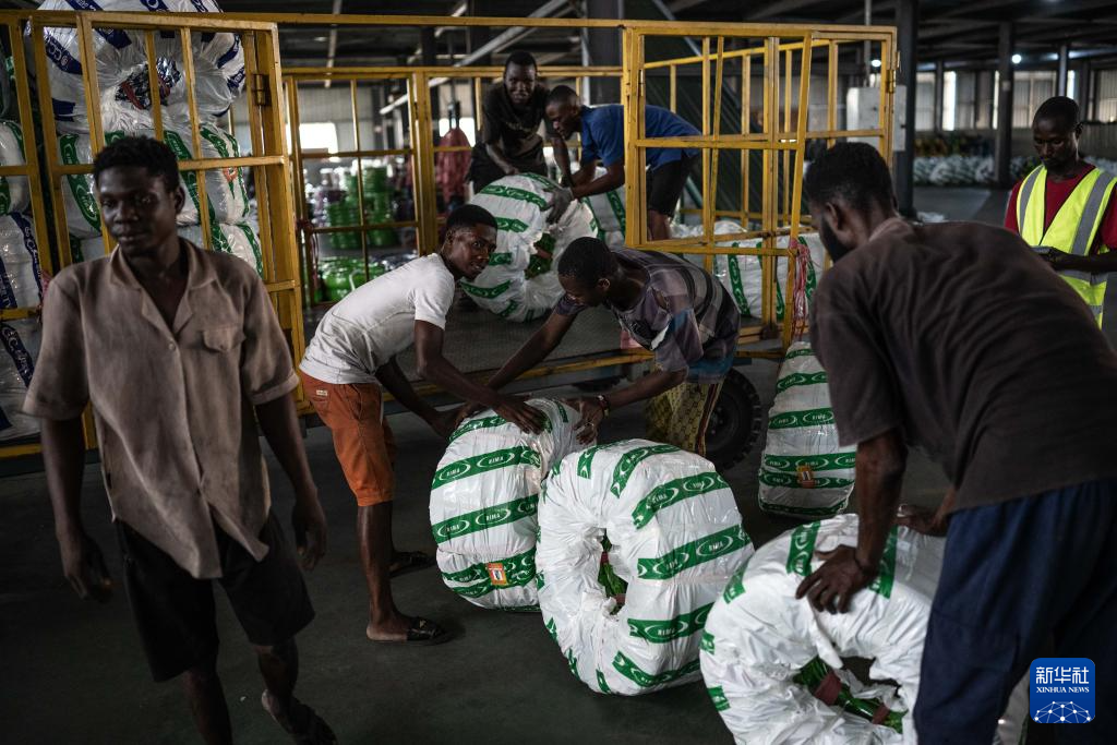 11月30日,工人在尼日利亚拉各斯的莱基港引导货车运输货物。