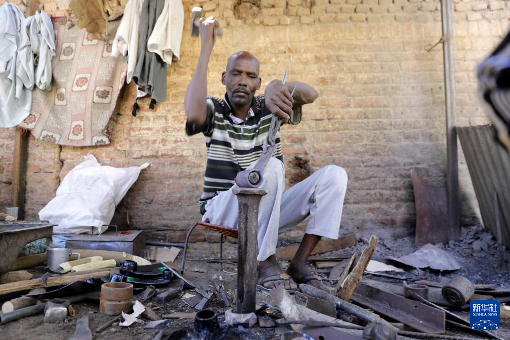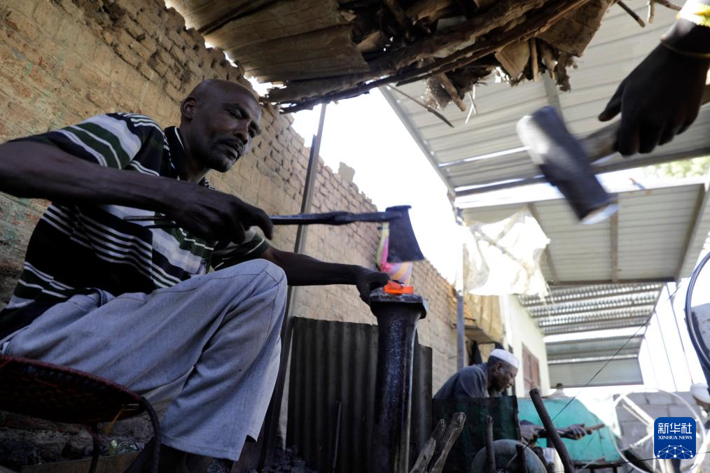 受持续武装冲突影响,苏丹不少生产农具的现代工厂被迫关门,人们不得不用传统方法手工打造农具。