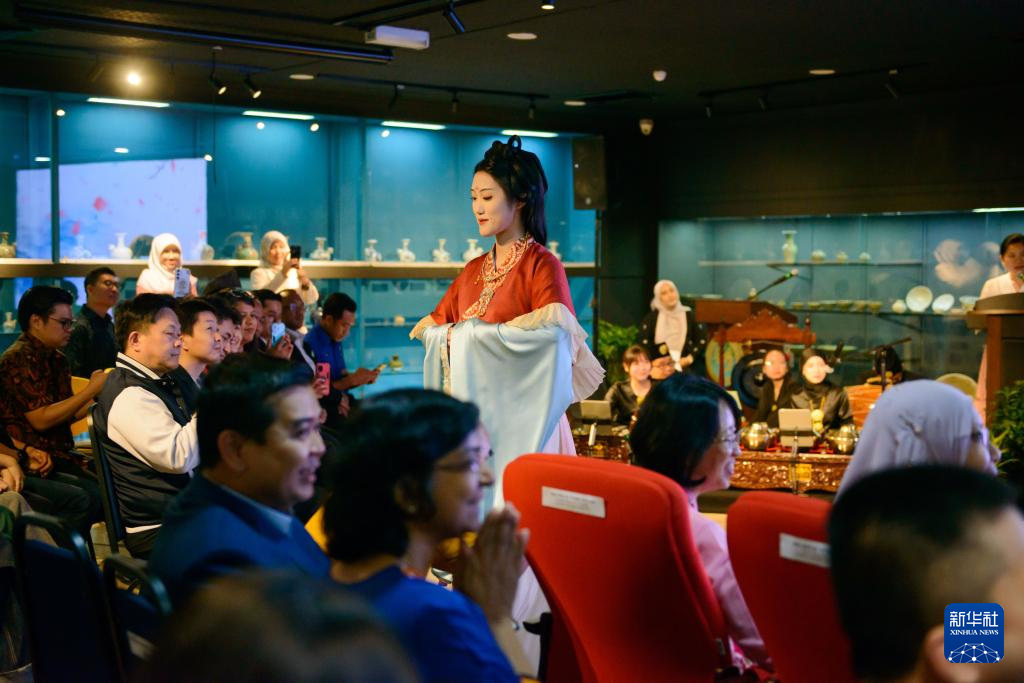 通讯|服章传万里 锦衣叙情深——走进马来西亚“历久弥新的汉服与中国纹样展”-12月10日,在马来西亚吉隆坡,观众在展览现场观赏展出的汉服。'...