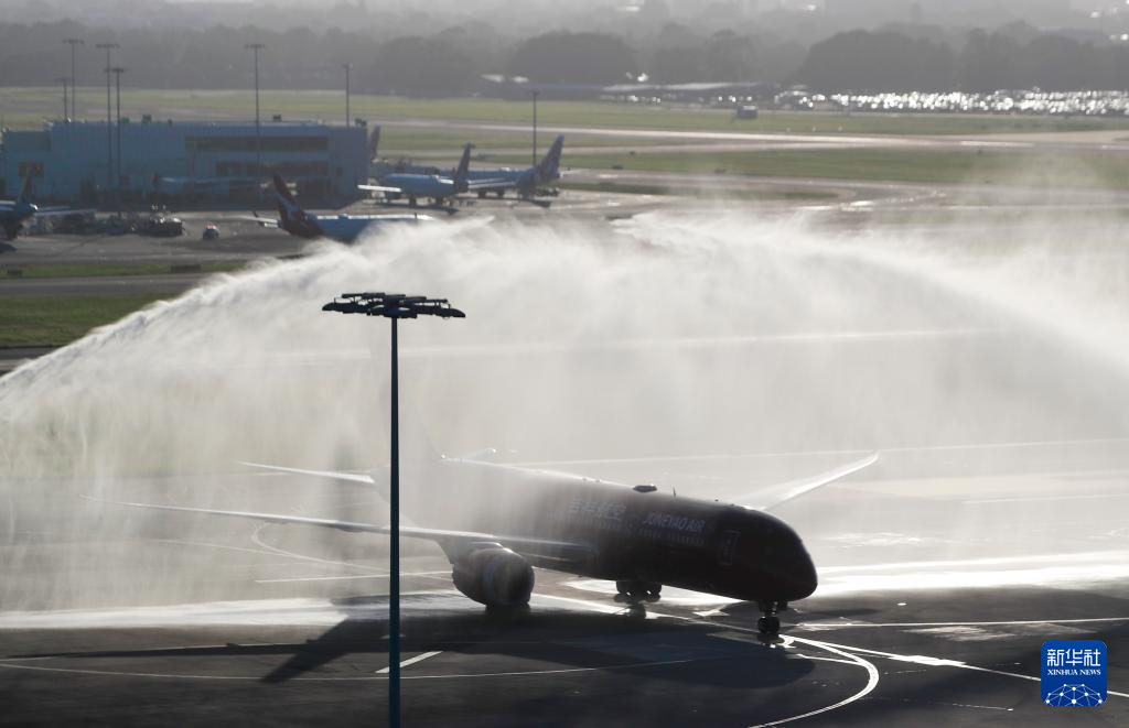 12月17日,吉祥航空上海-悉尼洲际航线首航航班降落在澳大利亚悉尼机场。
