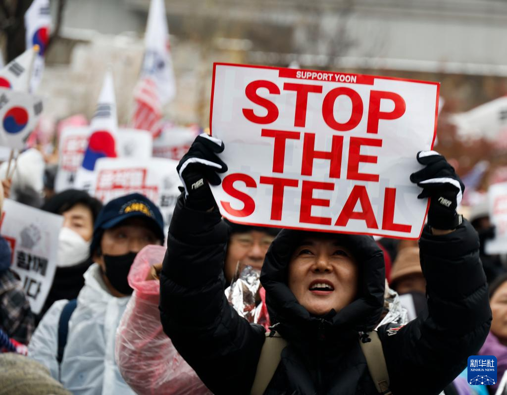 1月5日,尹锡悦支持者在位于韩国首尔的总统官邸附近参加集会反对逮捕总统尹锡悦。