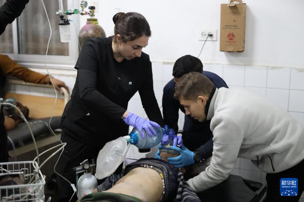 1月16日,医护人员在加沙城一所医院救治伤员。