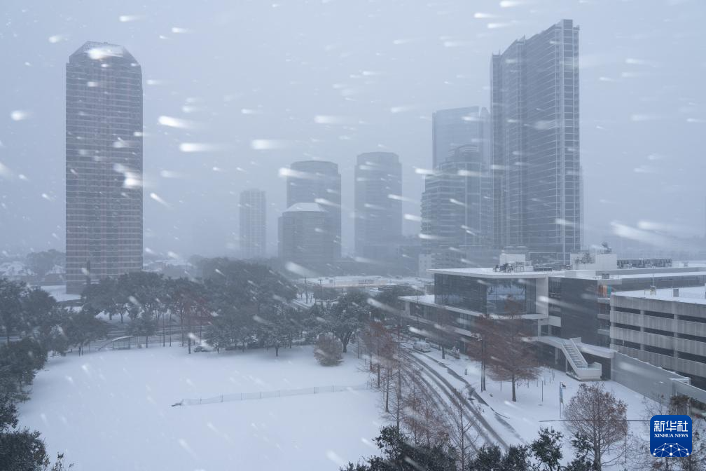 这是1月21日拍摄的冬季风暴中的美国休斯敦市区。