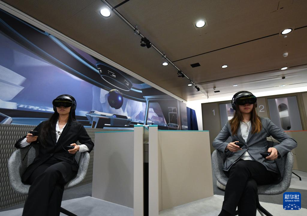 1月23日,在瑞士达沃斯,与会者借助VR设备沉浸式参加世界经济论坛2025年年会。