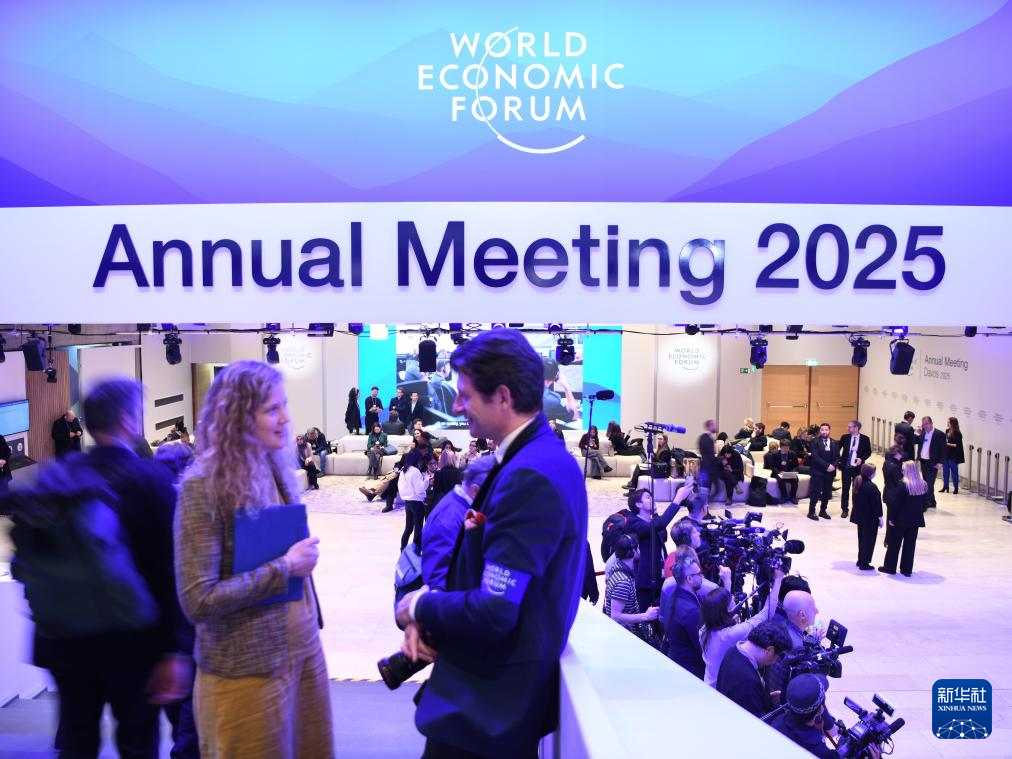 1月23日,在瑞士达沃斯,与会者参加世界经济论坛2025年年会。
