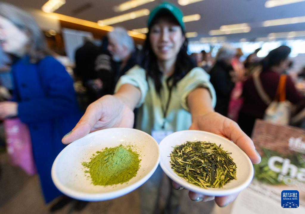 2月1日,一名参展商在加拿大多伦多茶文化节上展示茶品。