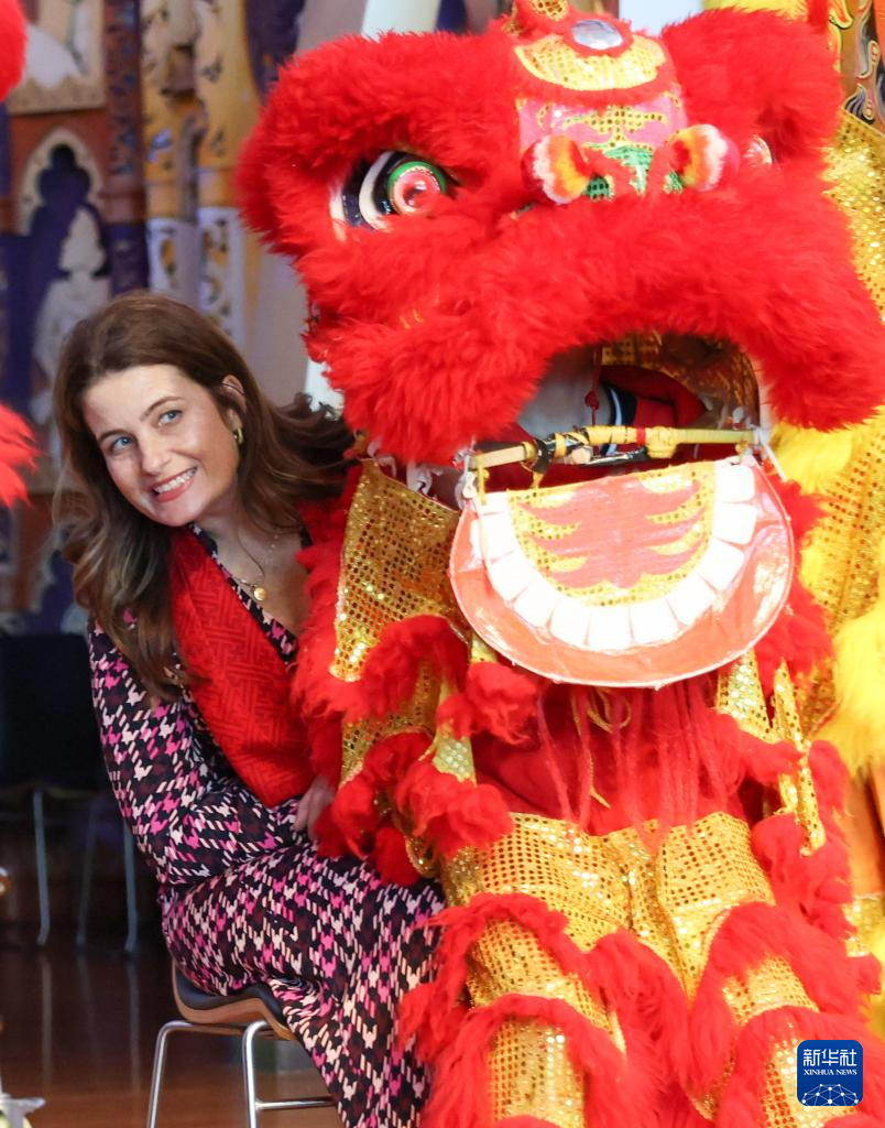 2月1日,人们在新西兰奥克兰美术馆举办的春节庆祝活动上观看舞狮表演。
