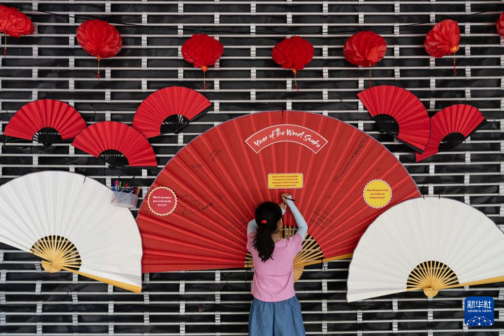 2月1日,一个女孩在新西兰奥克兰街头的纸扇上写下新年愿望。