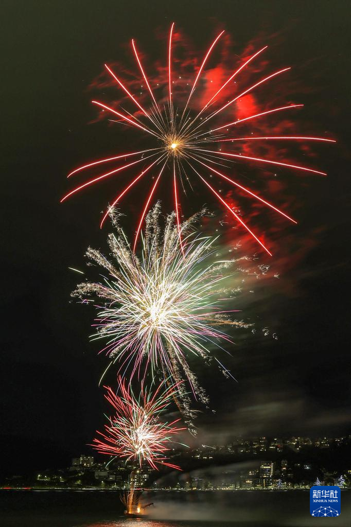 2月1日晚,新西兰惠灵顿海滨燃放烟花庆祝春节。
