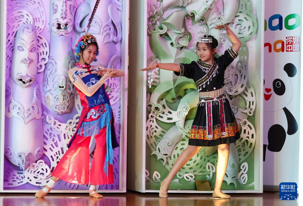 2月1日,两名儿童在新西兰惠灵顿举办的春节庆祝活动上表演中国舞蹈。