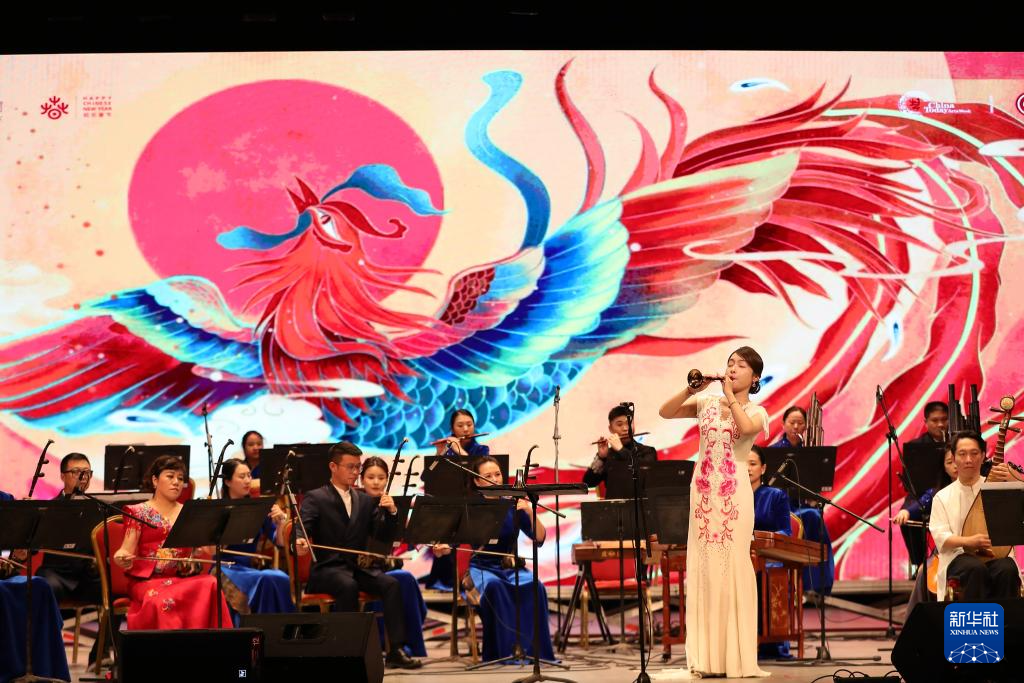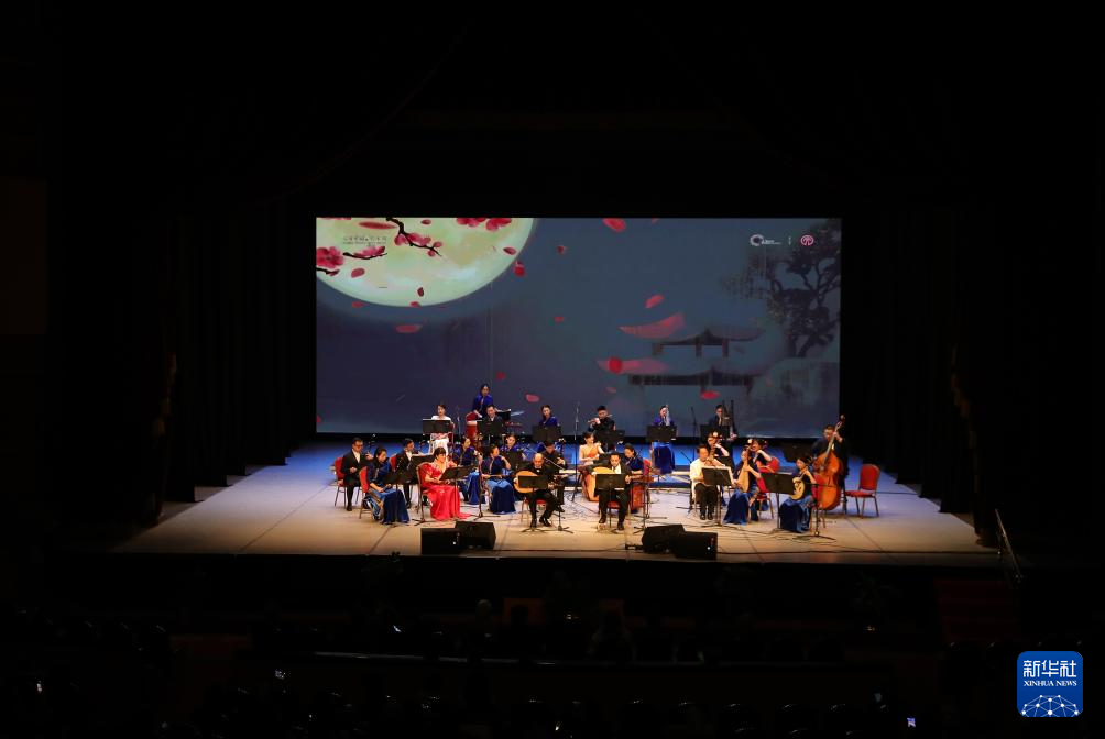 2月3日,在埃及开罗,中埃艺术家在“金钟之星”中国民族音乐专场演出中合作演奏《花好月圆》。当日,由中国驻埃及使馆、中国文学艺术界联合会共同主办的2025“今日中国”艺术周、“欢乐春节”活动之“金钟之星”中国民族音乐专场演出在埃及首都开罗歌剧院举行。