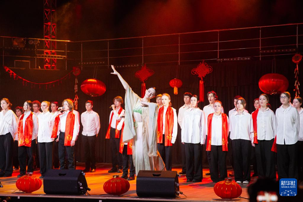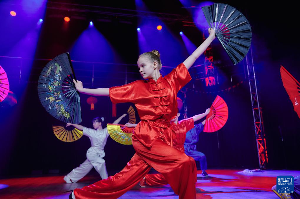 2月3日,俄罗斯圣彼得堡学生在中小学春节联欢节上表演。当日,由中国驻圣彼得堡总领馆与圣彼得堡“孔子”东方语言文化学院举办的第九届中小学春节联欢节在俄罗斯圣彼得堡举行,近千名中小学生和家长欢聚一堂,共庆中国新春佳节。