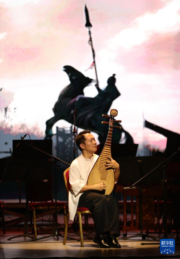 2月3日,在埃及开罗,艺术家在“金钟之星”中国民族音乐专场演出中表演琵琶独奏《十面埋伏》。当日,由中国驻埃及使馆、中国文学艺术界联合会共同主办的2025“今日中国”艺术周、“欢乐春节”活动之“金钟之星”中国民族音乐专场演出在埃及首都开罗歌剧院举行。