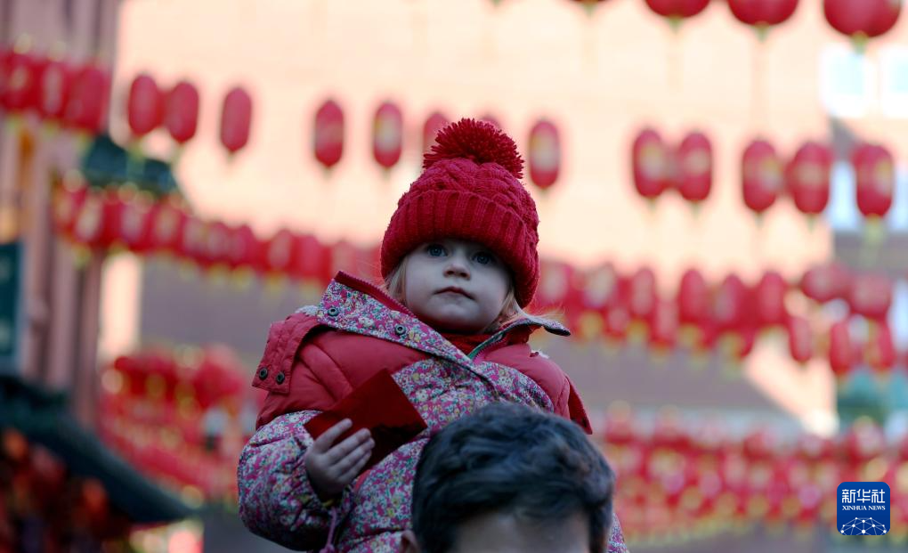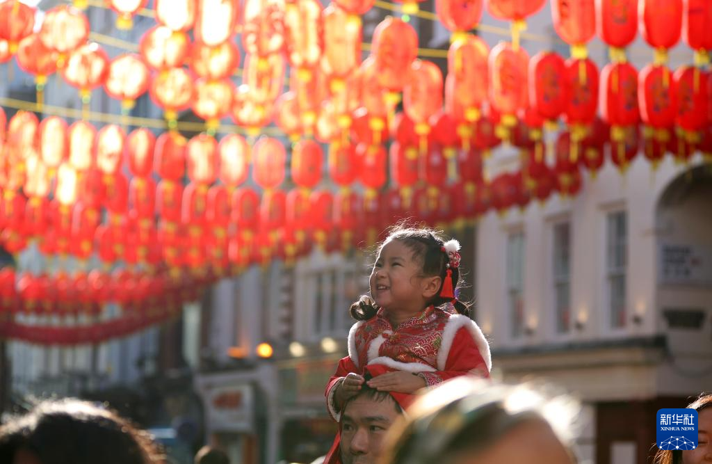 2月2日,在英国伦敦,一名女孩在英国伦敦中国城参加春节庆祝活动。