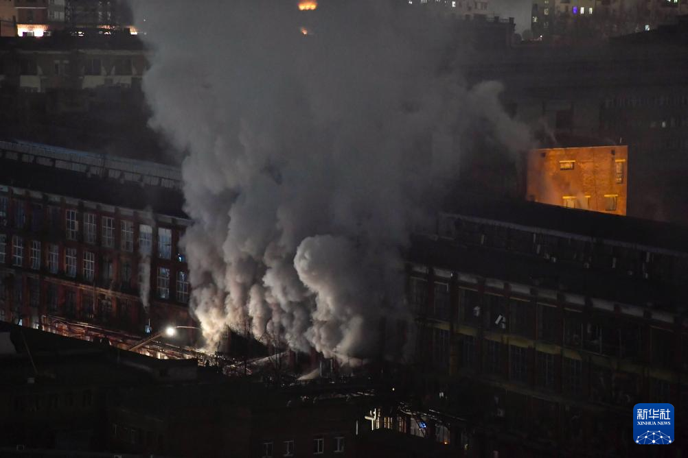 这是2月8日在俄罗斯首都莫斯科拍摄的起火建筑。