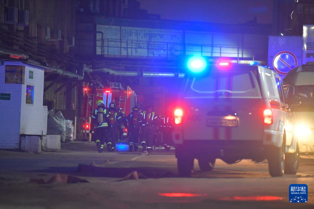 2月8日,在俄罗斯首都莫斯科,消防员抵达火灾现场开展救援。