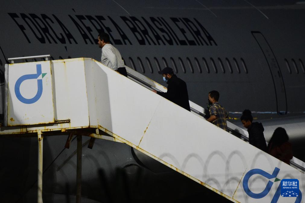 2月7日,被美国驱逐出境的第二批巴西非法移民乘坐的飞机在巴西东北部塞阿拉州福塔莱萨国际机场降落。