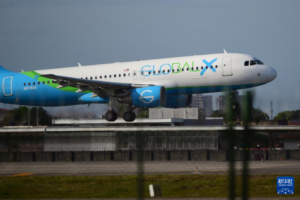 2月7日,被美国驱逐出境的第二批巴西非法移民乘坐的飞机在巴西东北部塞阿拉州福塔莱萨国际机场准备降落。