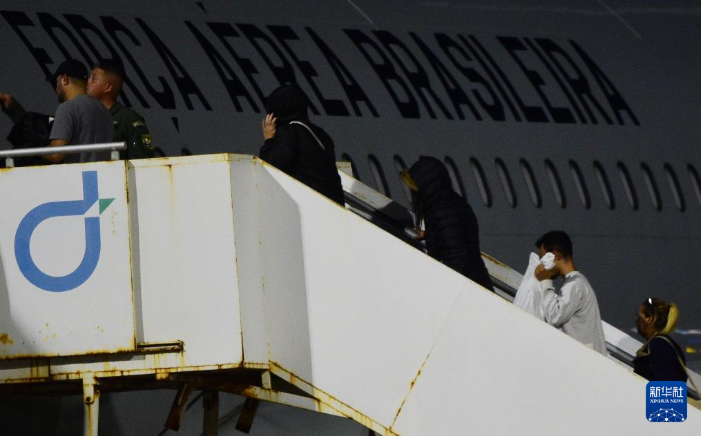2月7日,在巴西东北部塞阿拉州福塔莱萨市,被美国驱逐出境的第二批巴西非法移民登上一架巴西空军飞机。