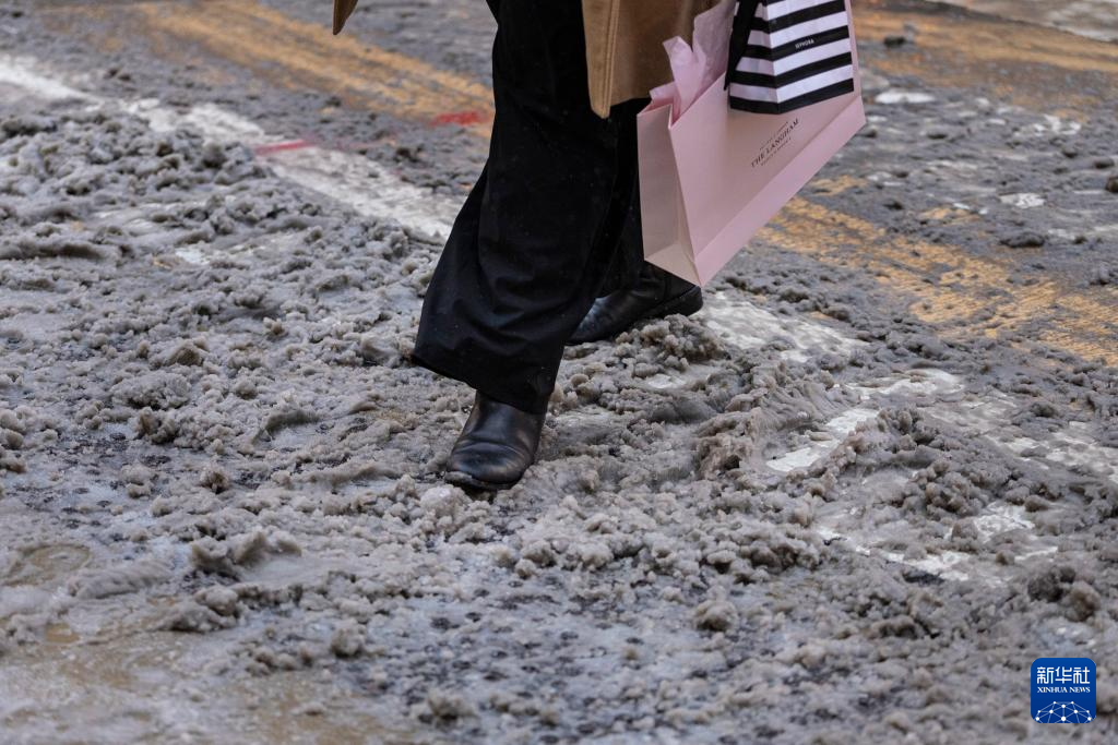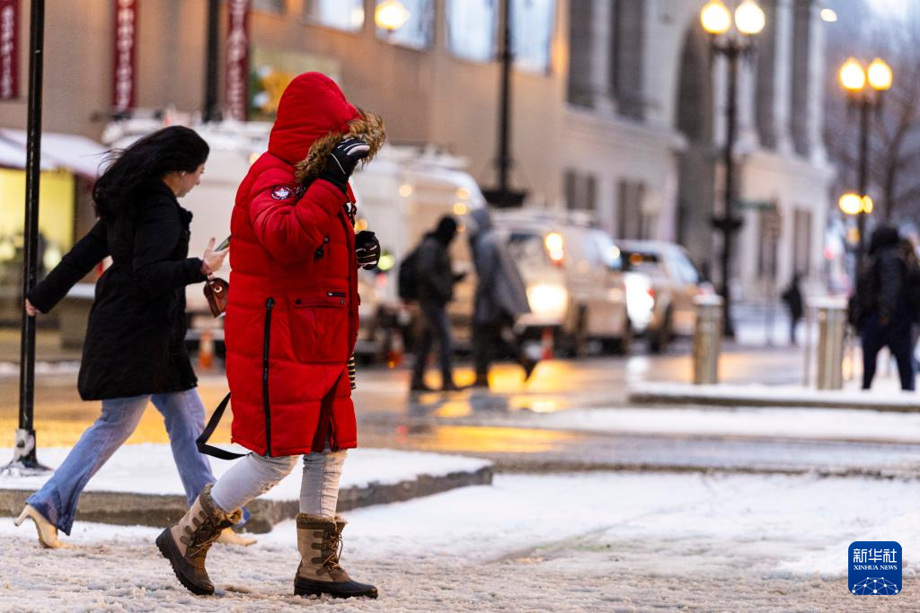 2月12日,行人走在美国芝加哥市中心积雪的道路上。