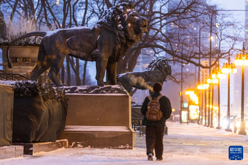 芝加哥当日遭遇冬季风暴,降雪过后气温大幅下降。