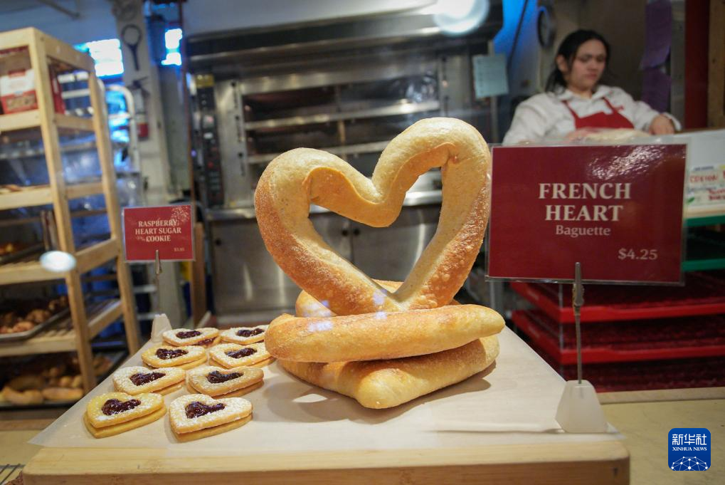 2月13日,在加拿大温哥华,一家面包店展示情人节主题的烘焙食品。