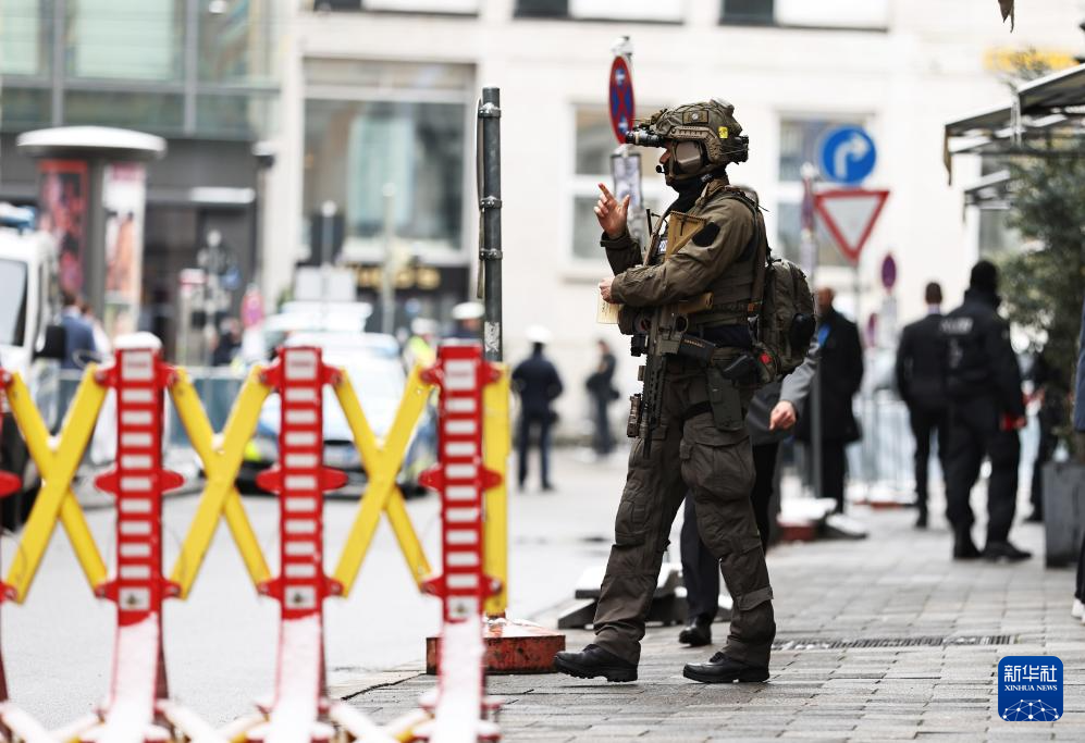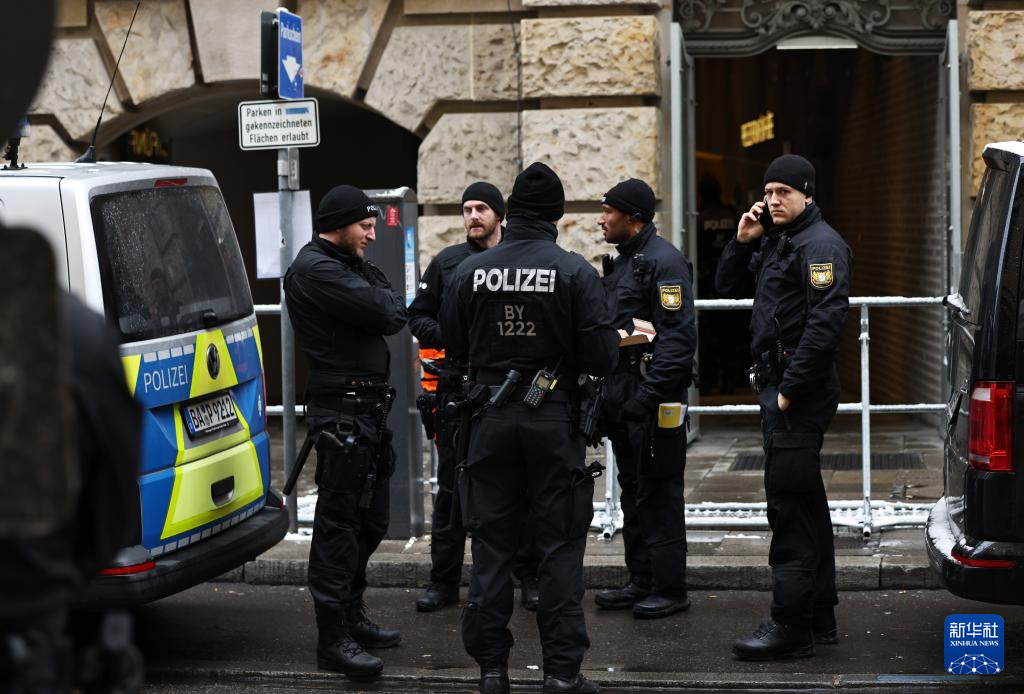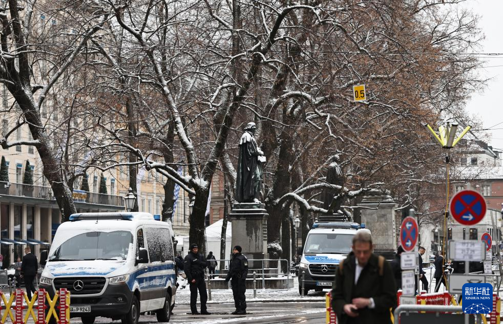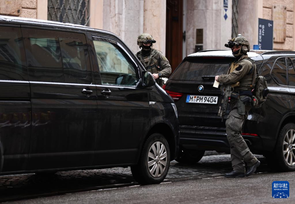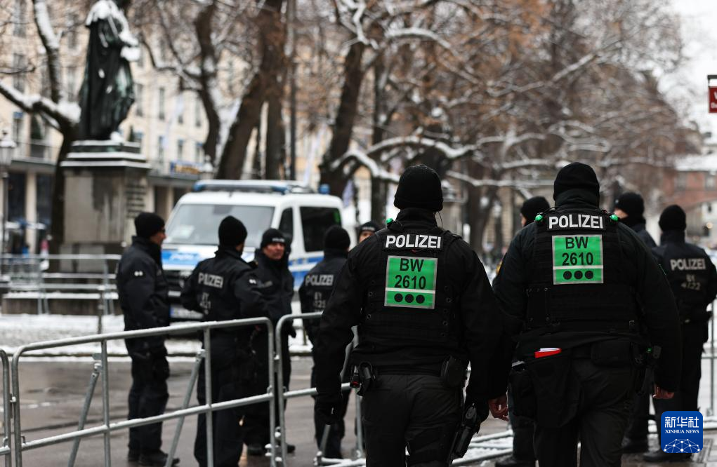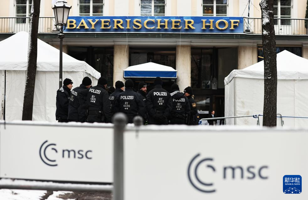 2月14日,警察在德国慕尼黑安全会议主会场外警戒。