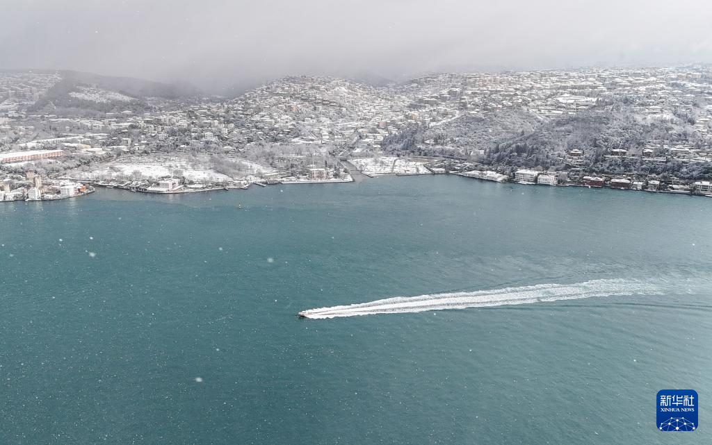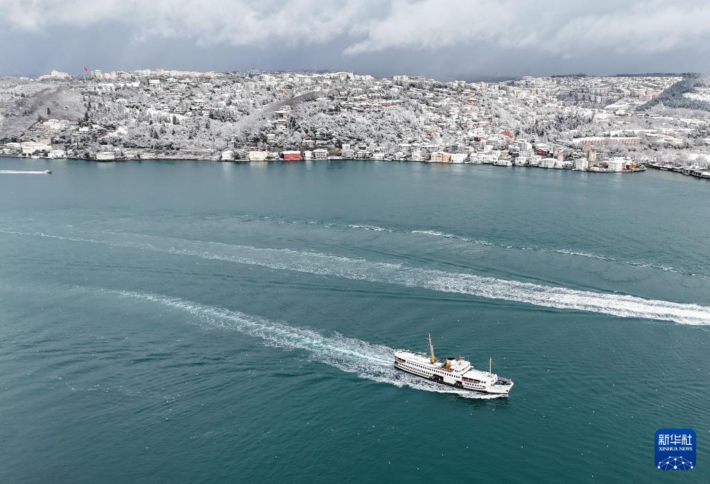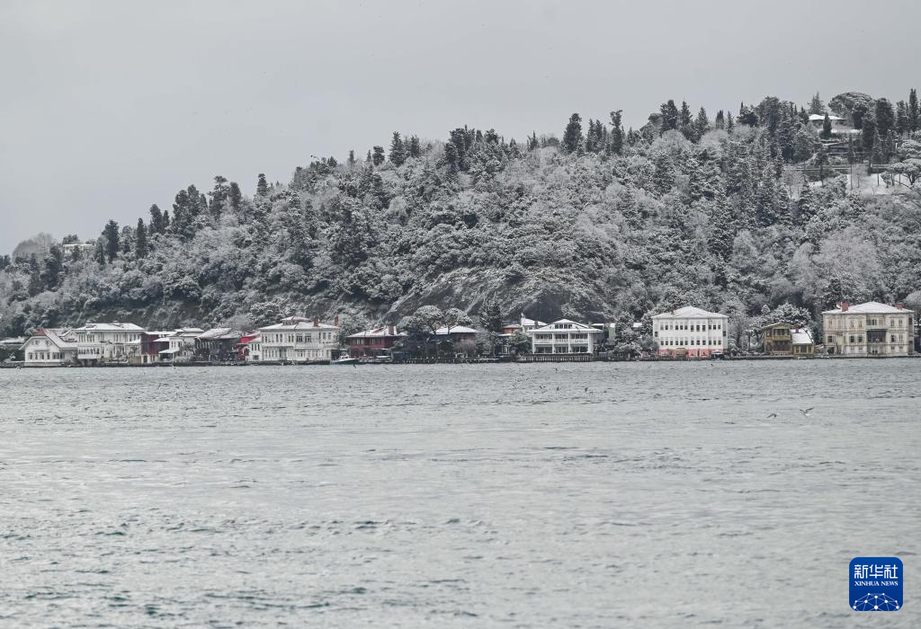博斯普鲁斯海峡位于土耳其伊斯坦布尔,连接黑海和地中海。冬日的博斯普鲁斯海峡在雪景映衬下景色宜人。