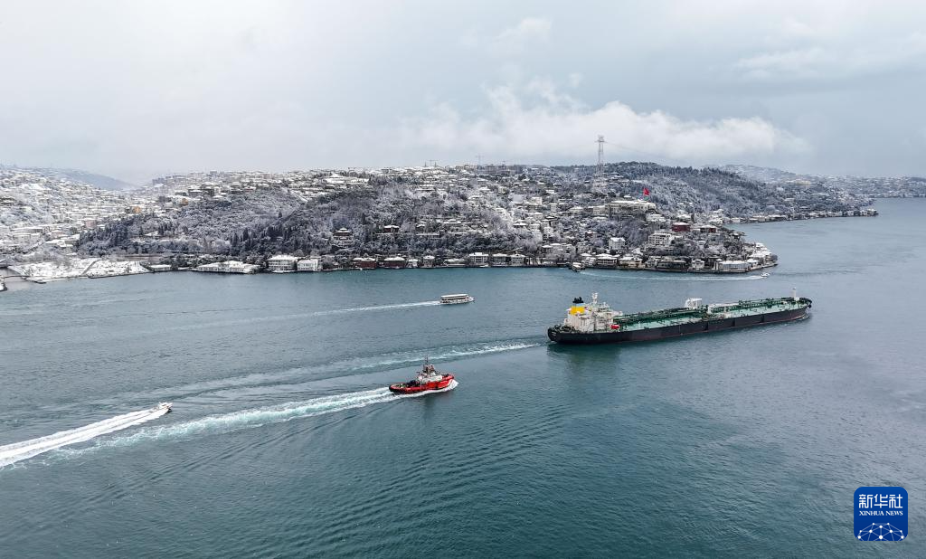 这是2月21日在土耳其伊斯坦布尔拍摄的博斯普鲁斯海峡。