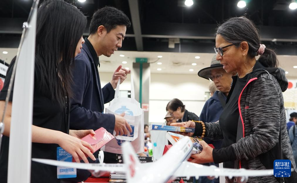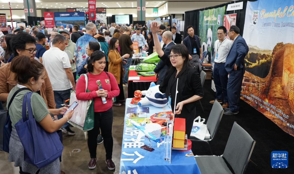 2月22日,人们在美国洛杉矶旅游展上参观中国展台。