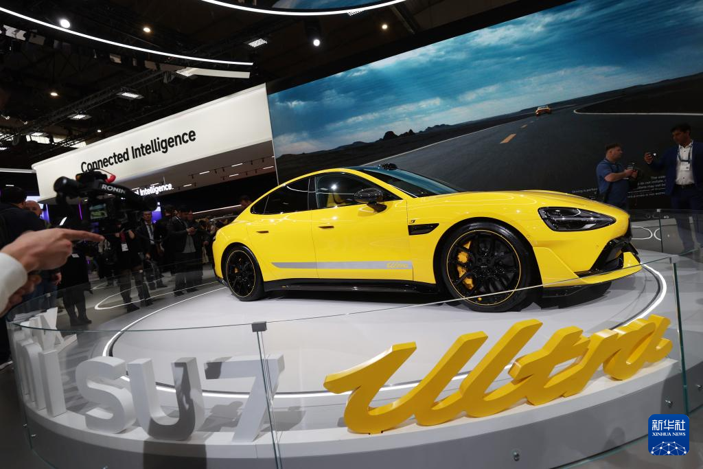 3月3日,在西班牙巴塞罗那举行的2025年世界移动通信大会上,人们观看小米汽车。