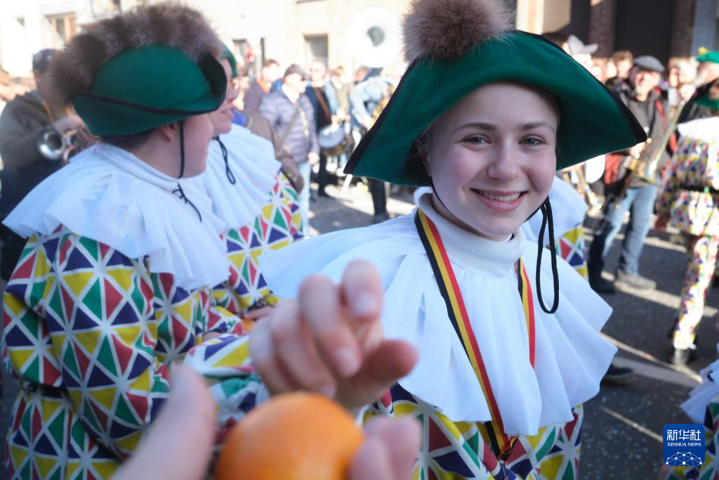 当日,比利时班什狂欢节迎来“血橙盛典”,装扮成“憨人”“水手”“农夫”“小丑”等形象的当地居民把代表幸运的血橙抛向人群中,将节日气氛推至最高潮。
