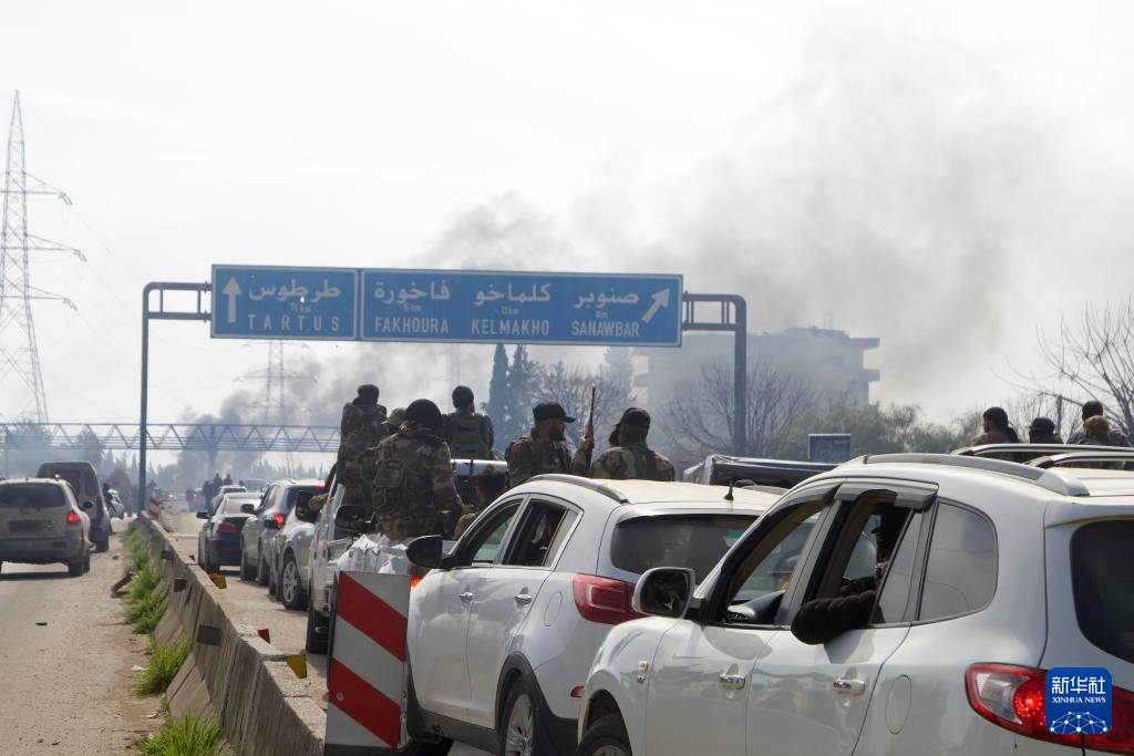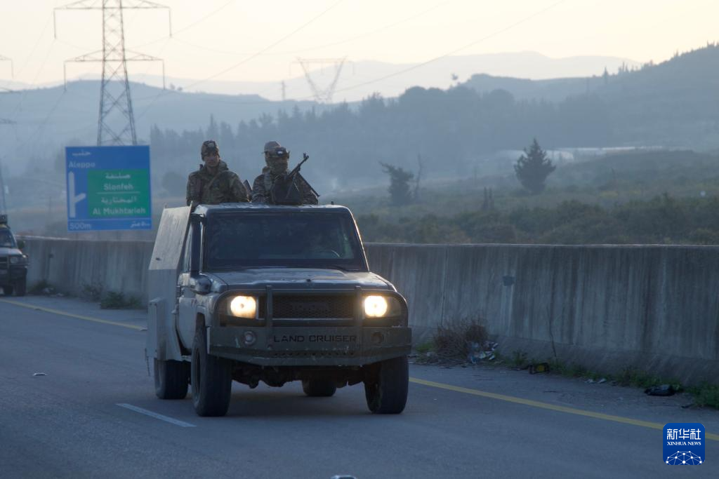 3月7日,在叙利亚拉塔基亚省,安全人员行进在高速公路上。