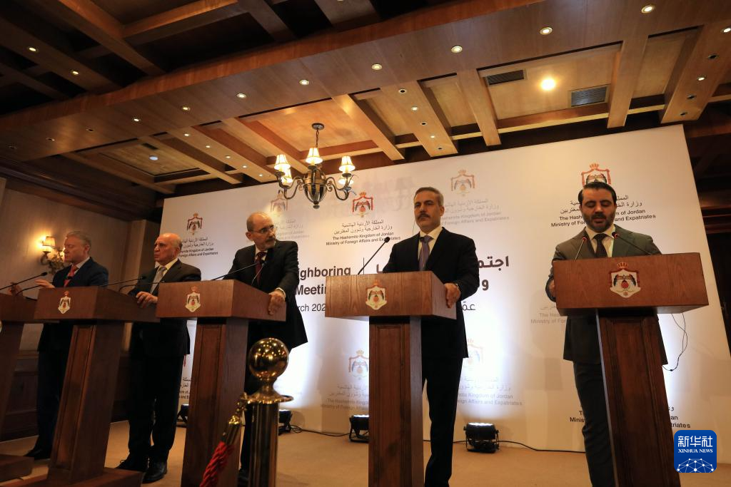 3月9日,在约旦首都安曼,叙利亚、约旦、土耳其、伊拉克和黎巴嫩五国的外长召开联合新闻发布会。