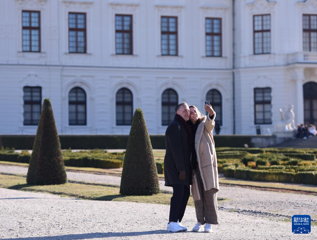 3月19日,人们在奥地利维也纳美景宫花园自拍。