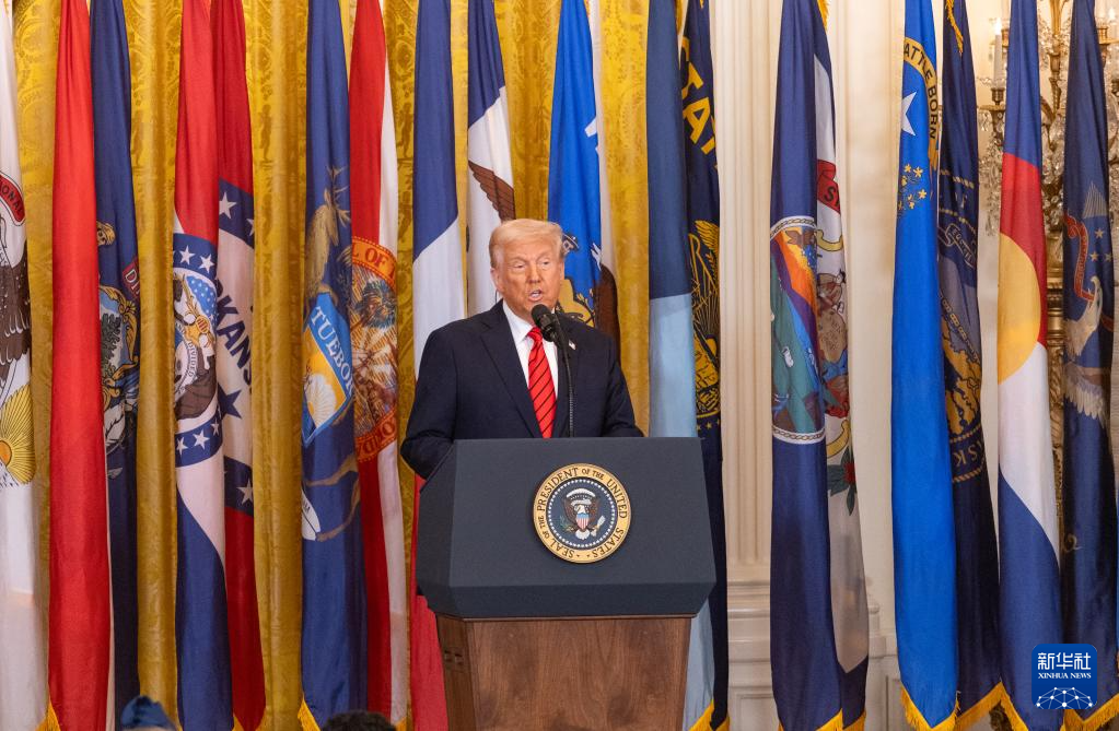 3月20日,美国总统特朗普在华盛顿白宫签署行政令前讲话。 新华社记者 胡友松 摄